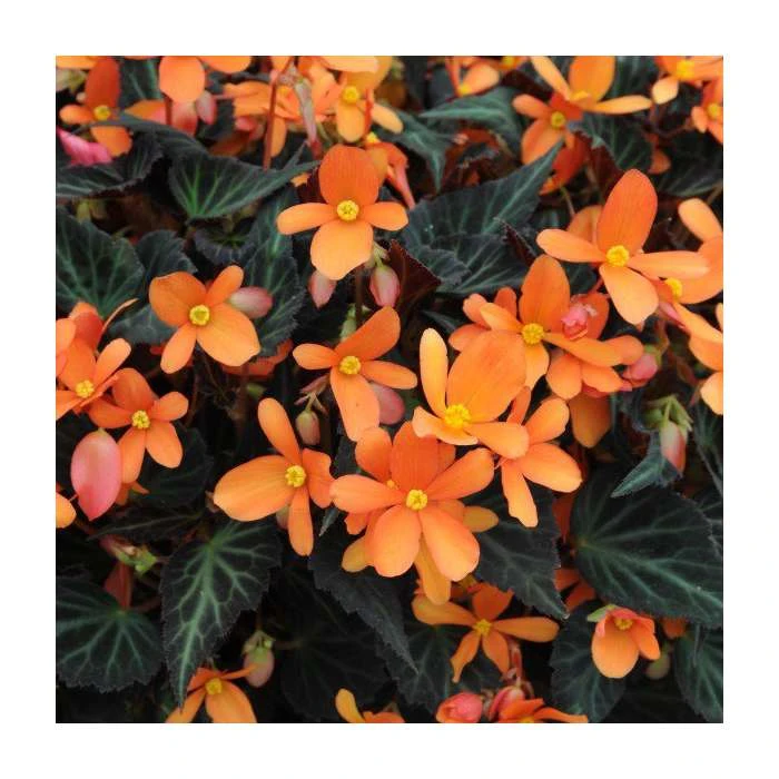 Dark leaves contrast these stunning and bright orange flowers