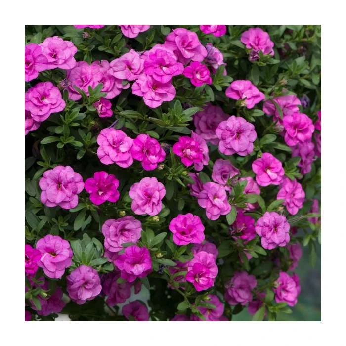 A floriferous Calibrachoa sporting pink double blooms…